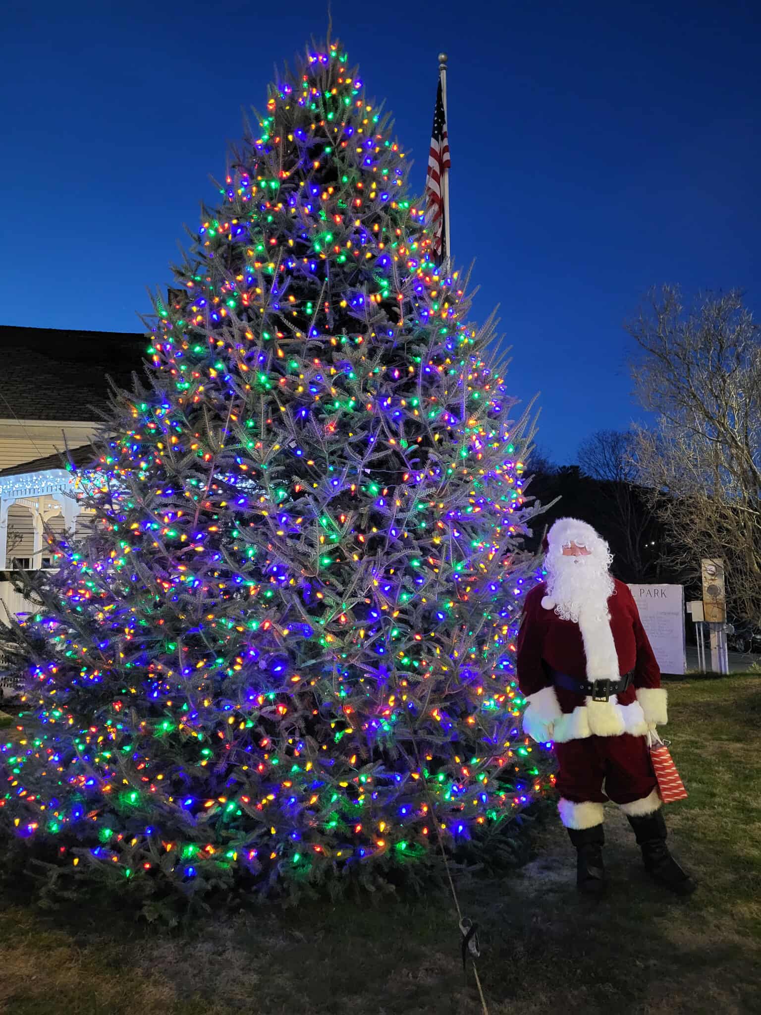 The Christmas tree at the center of town is lit! Thank you to everyone who contributed to putting up one of the best trees ever!
